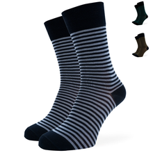 Strīpainas zeķes ir klasika ar kuru nevar nošaut greizi. Ar šīm zeķēm Tev ir iespēja papildināt sava uzvalka akcentu un pievērst sev uzmanību, tajā pašā laikā paliekot pie klasiskām vērtībām.