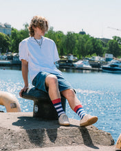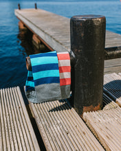 Sveiks, jūras ceļotāj! 🛥️ Karma Burātājs ir zeķes, kas tevi aizvedīs stilīgā piedzīvojumā, iedvesmojoties no klasiskiem jūrnieku strīpu dizainiem! Šīs strīpainās zeķes iepludina dzīvespriecīgu jūras garu tavā ikdienā.