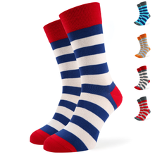 Karma Burātājs zeķes piedāvā klasiskas strīpas modernās krāsās, kas variē no vēsajiem zilajiem un zaļajiem toņiem līdz pat siltajiem sarkanajiem un dzeltenajiem. Tās ir radītas, lai būtu super ērti, elastīgi un stilīgi, kas nozīmē, ka tu jutīsies fantastiski gan birojā, gan pludmales ballītē.