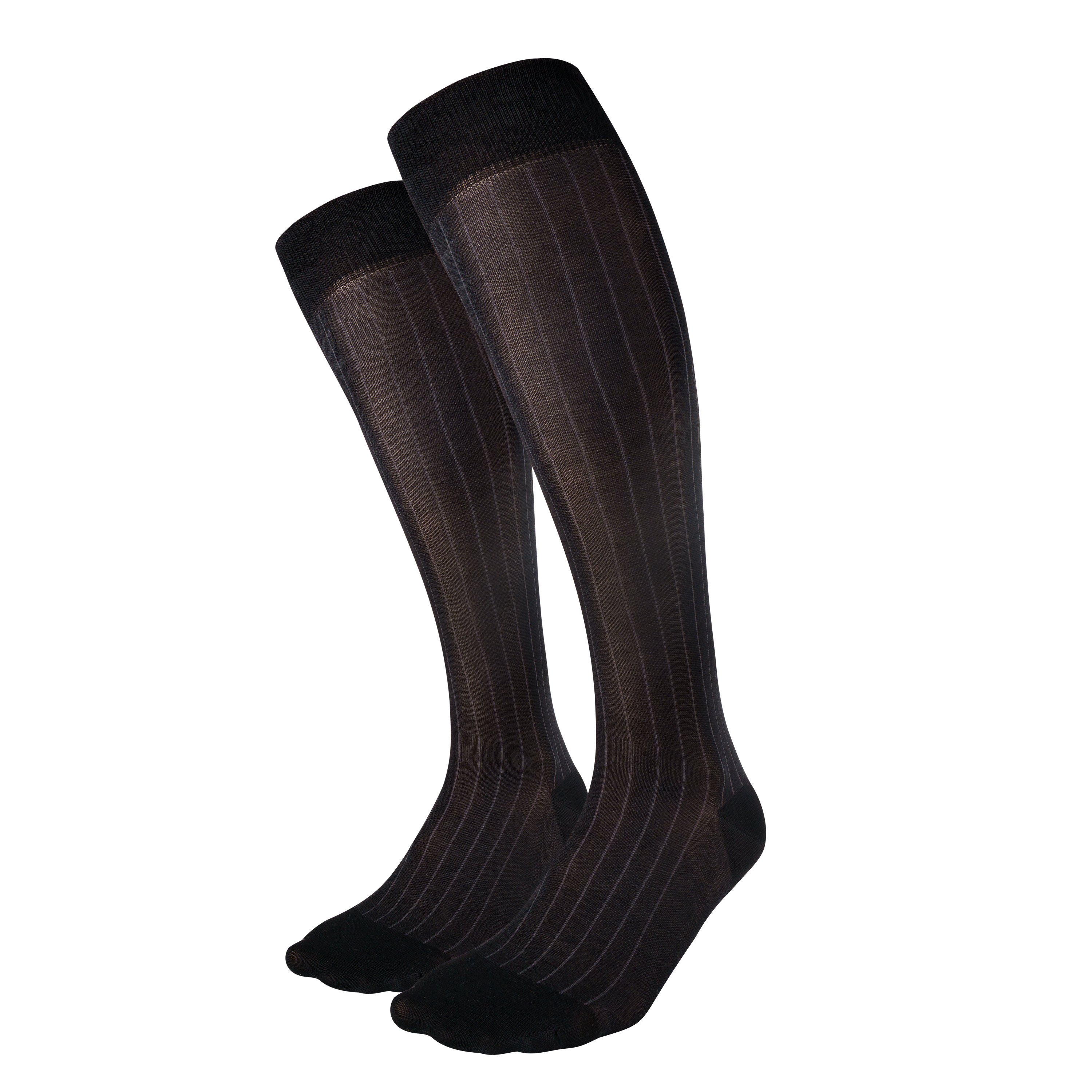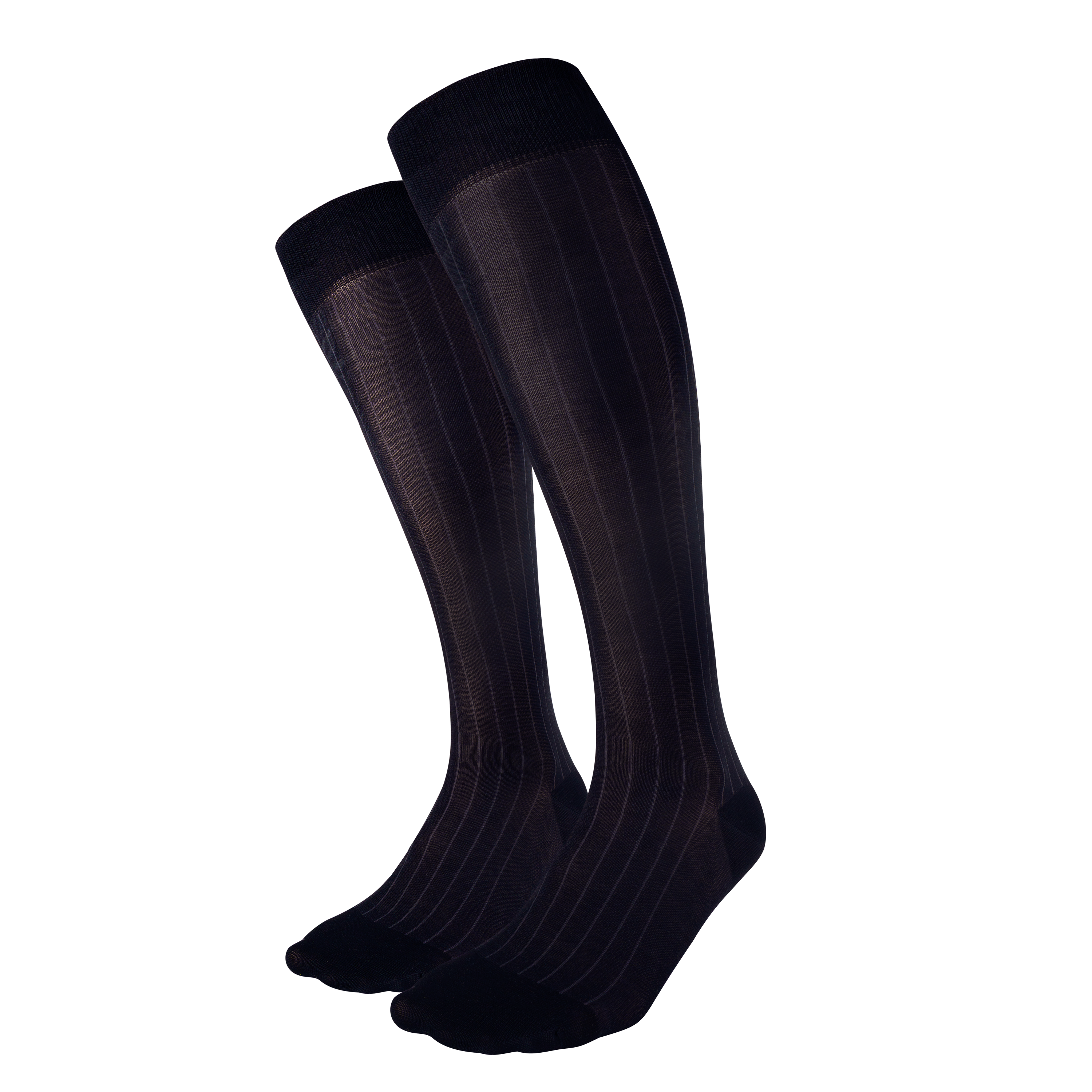 Premium pusgarās vīriešu zeķes no 80% merserizētās kokvilnas ar rievotu struktūru izcilai piegulšanai un elegantam izskatam. Nešļūk nost, ir elpojošas un maigas.