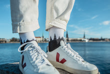 Zeķes ar Rīgas panorāmu ir radītas iedvesmojoties no Latvijas galvaspilsētas majestātiskā skaistuma. Tajās attēlota slavenā Rīgas silueta līnija ar tās ikoniskajiem arhitektūras pieminekļiem un Vecrīgas vēsturisko šarmu. Zeķes ir lielisks veids, kā ikdienā nēsāt daļiņu Rīgas mākslas un vēstures ar komfortu un stilu.