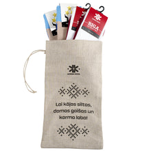 Dāvanu komplekts iesaiņots elegantā un daudzreiz lietojamā lina dāvanu maisā ar vēlējumu